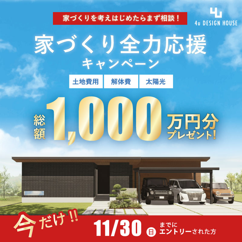 総額1,000万円分プレゼント!家づくり全力応援キャンペーン
