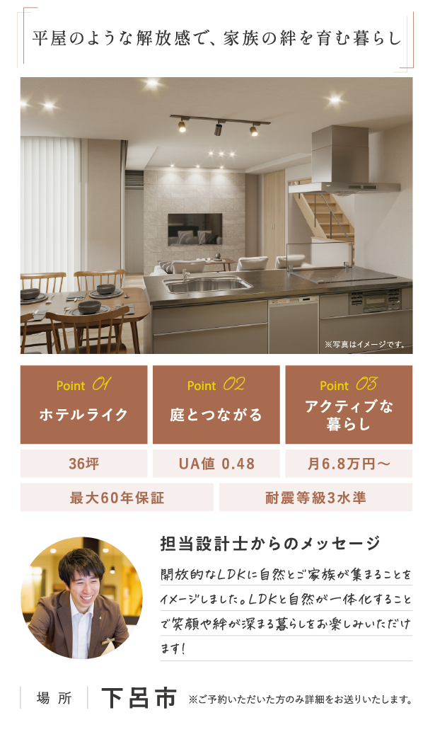 100 年以上地域に根ざし、豊富な実績がある私たちだからこそ、デザインも性能も価格も最適なバランスで暮らしを考え、心身ともに快適な毎日を実現します。