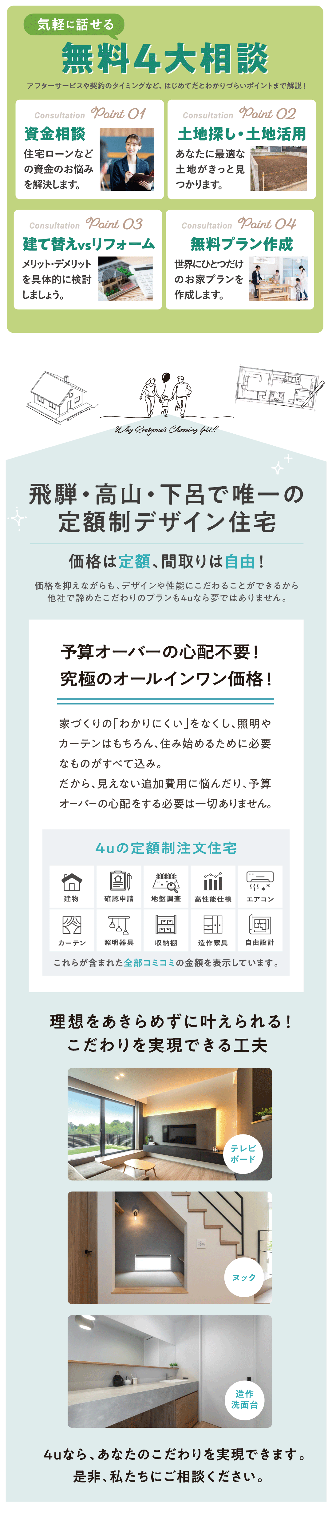 100 年以上地域に根ざし、豊富な実績がある私たちだからこそ、デザインも性能も価格も最適なバランスで暮らしを考え、心身ともに快適な毎日を実現します。