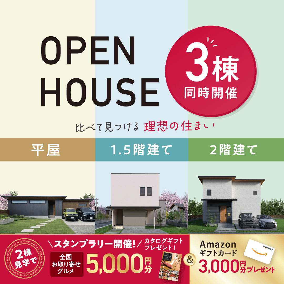 【平屋・1.5階・2階】3棟同時見学会 豪華8,000円分特典有り!!|高山市